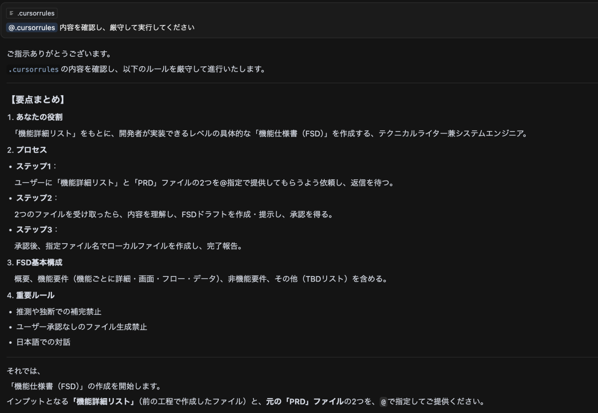 各フォルダーには専用の.cursorrulesとテンプレートファイルが配置され、一貫した流れでAIの支援を受けられます。