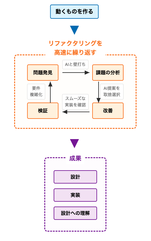 - 改善:改善策をAIで素早く実装し、設計理論と具体的なコードを合わせて考えることができる