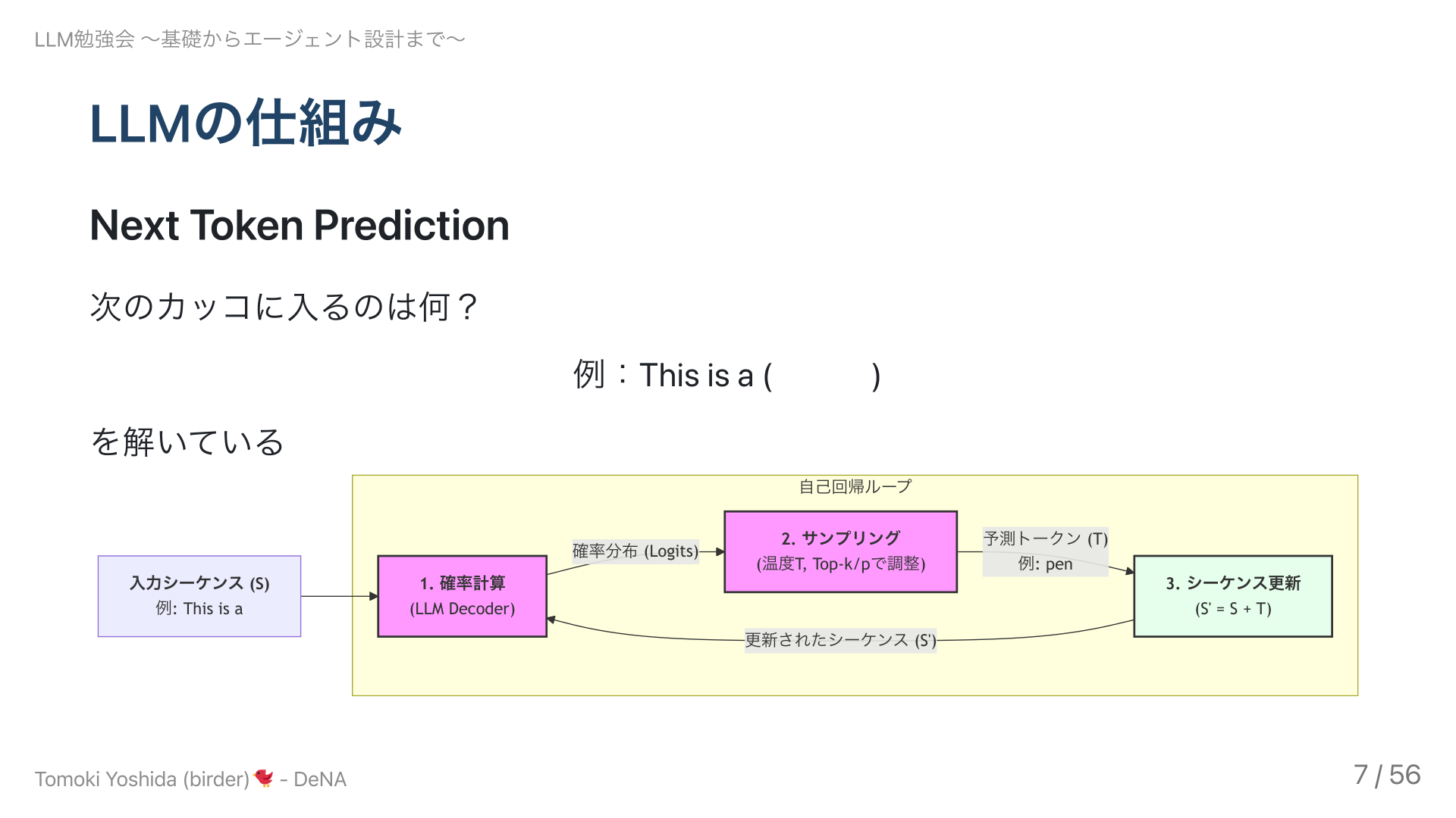 Next Token Predictionの話からInstruction Tuning、Reasoning、プロンプトエンジニアリングの話までLLMに関する基本的な知識を紹介しました。